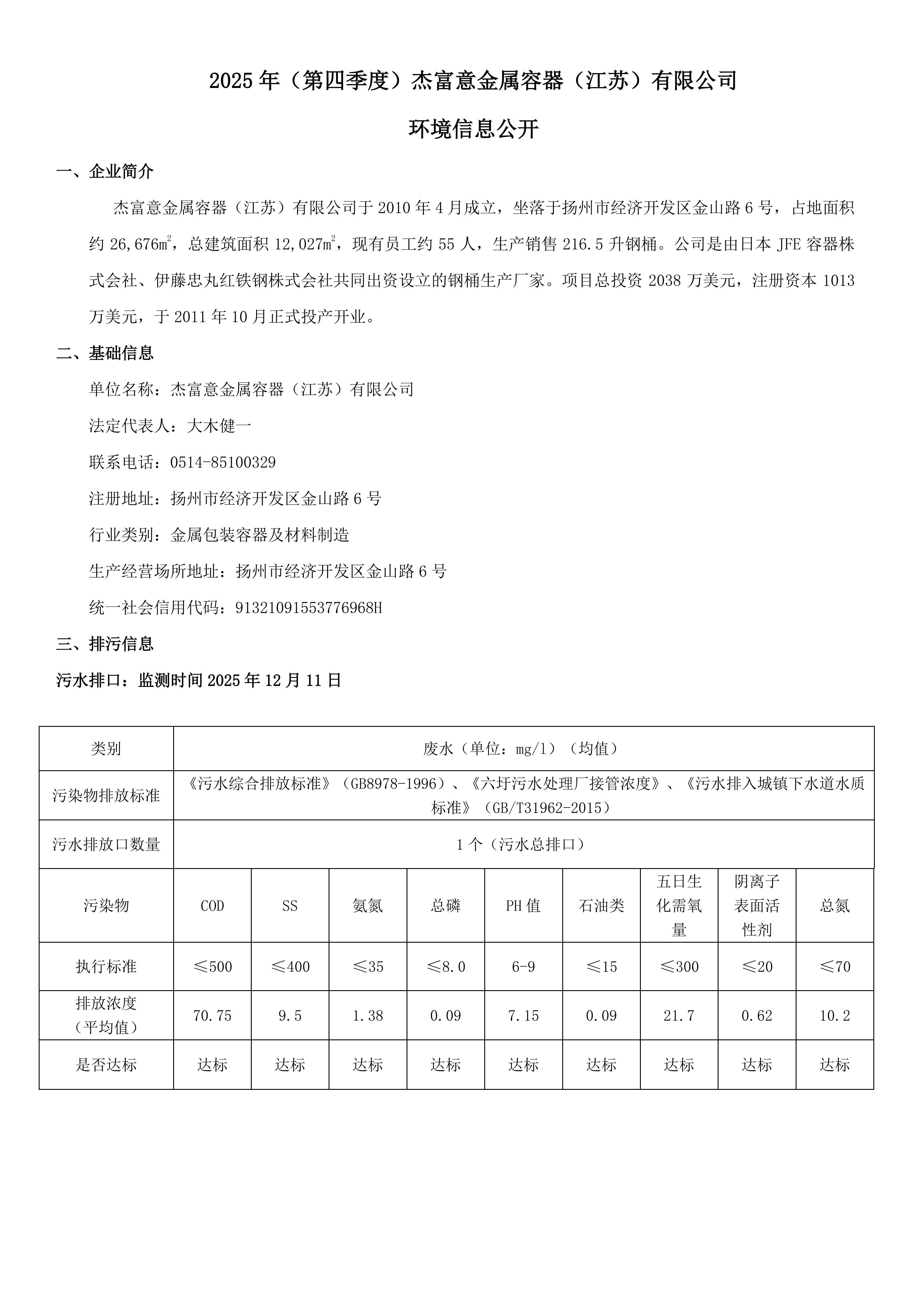 杰富意(江苏) 环境信息公开