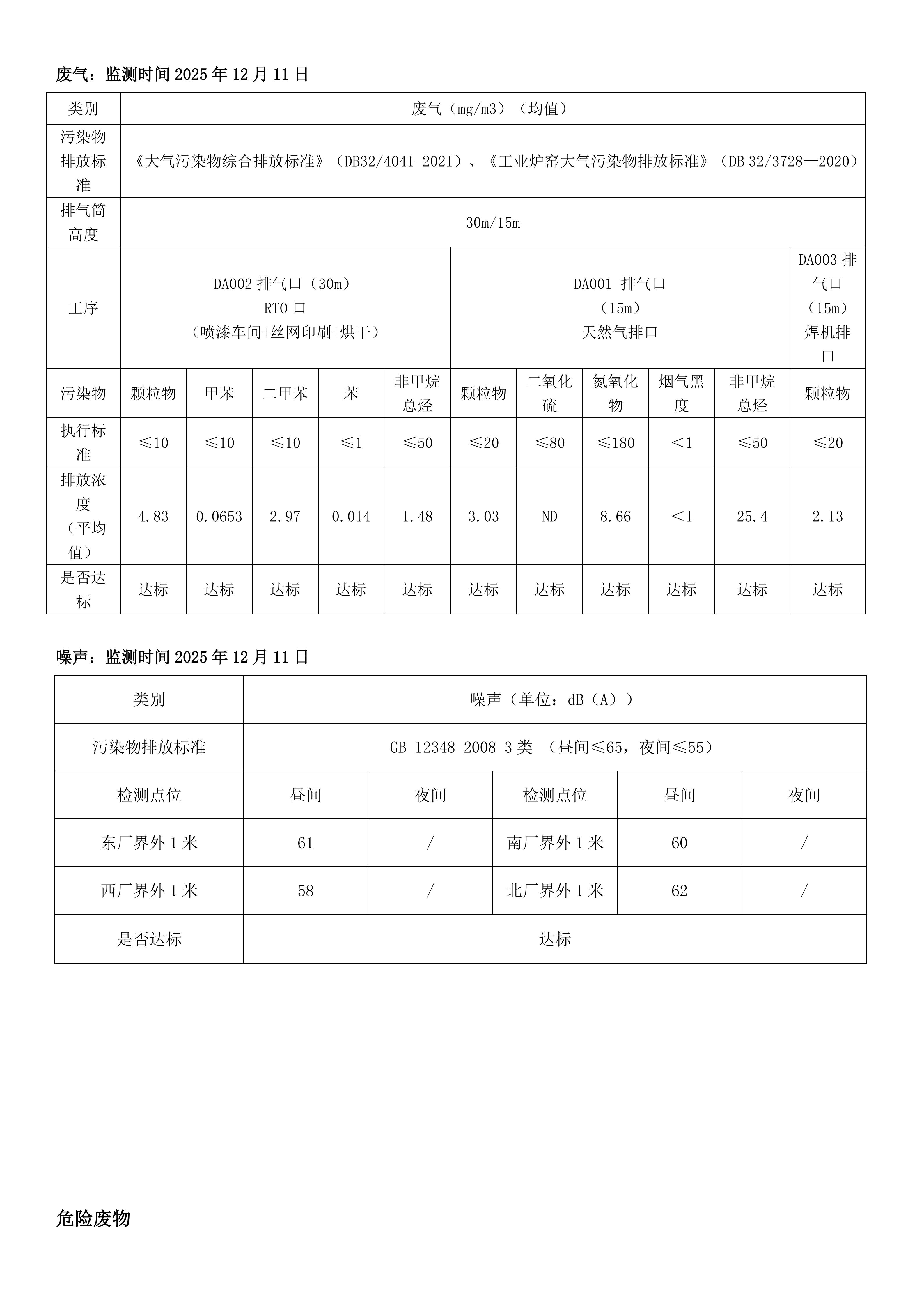 2025年度第四季度环境信息公开